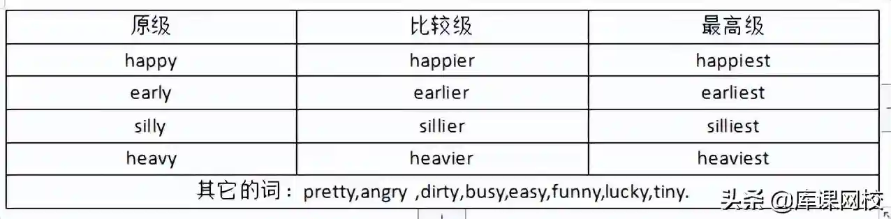 3)以-y结尾的词应先变y为i,再加-er和-est分别构成比较级和最高级。