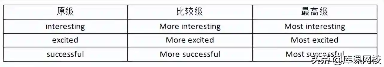 三个或更多音节的词都是在其前加more和most来构成比较级和最高级。