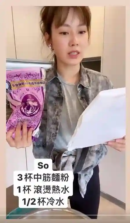 “好,接下来我们就要和面,和面是我最紧张的,everytime我都会很紧张。我们用的是中筋的面粉。”