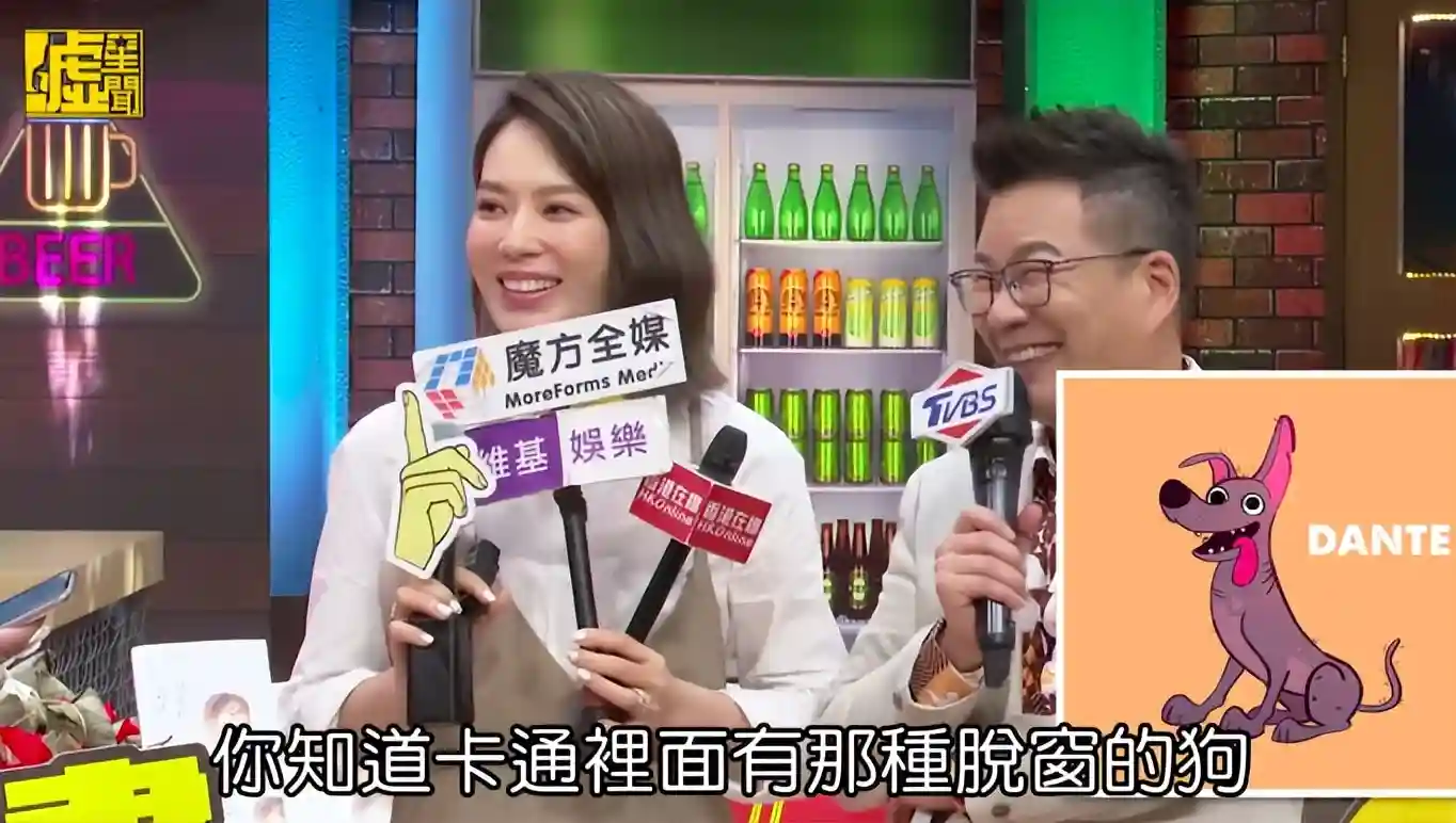 她出书,里面形容男人像黄金猎犬。记者就问她,玉琳哥像什么狗。刘女士就说卡通里有一种很脱窗(台语)的狗,很荒谬又很可爱。
