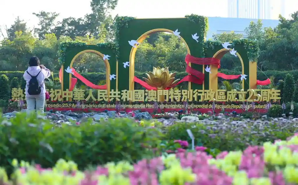国旗区旗迎风飘扬,条幅海报遍布街头巷尾,丰富多彩的庆祝活动轮番登场……连日来,澳门处处洋溢欢乐喜庆的气氛,全城热烈庆祝回归祖国25周年。